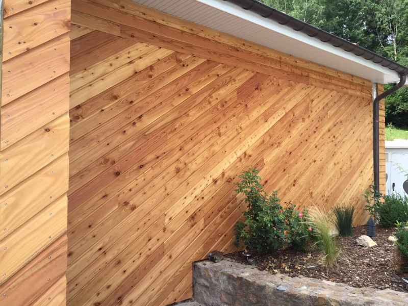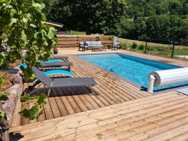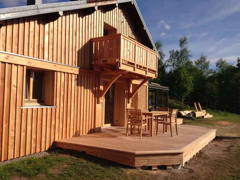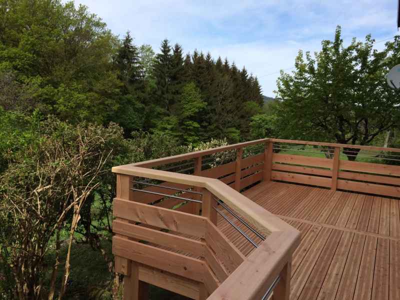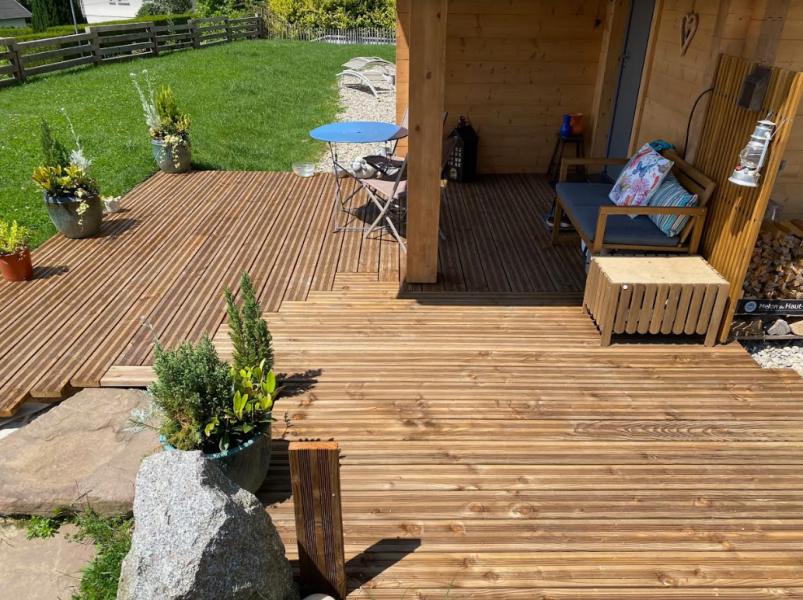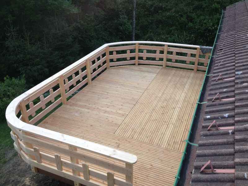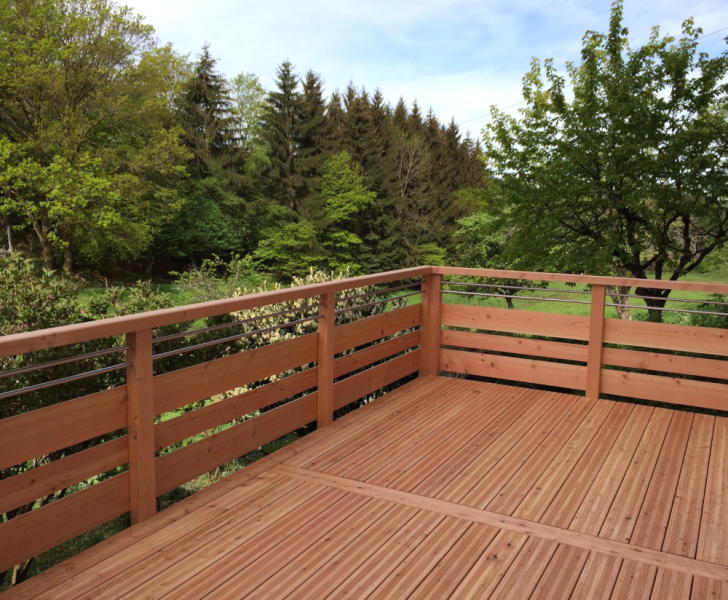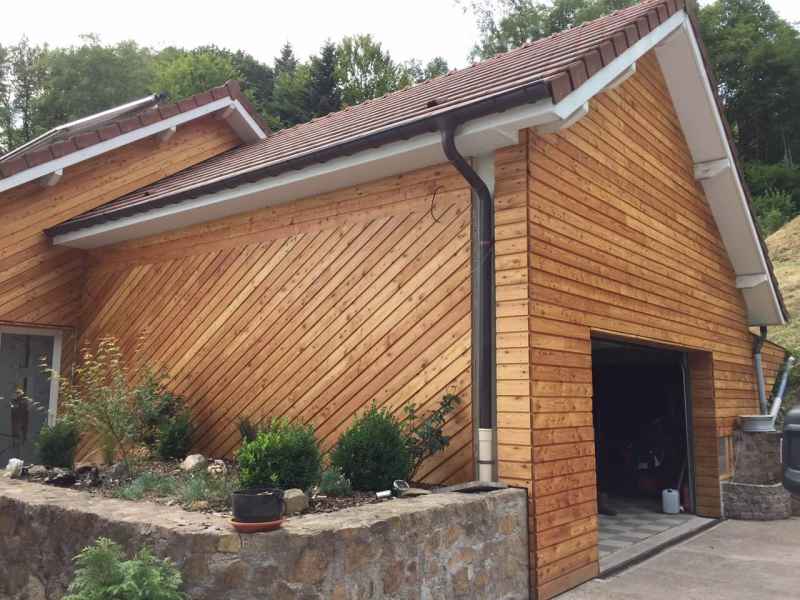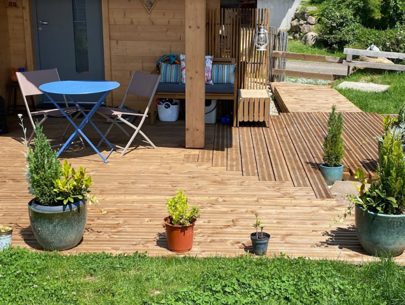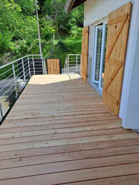 En bois de pays : Douglas, mélèze ou traitées autoclave. Epaisseur 23 mm, 27 mm ou 35 mm